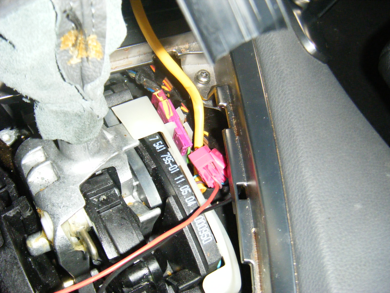 The way it works is that when either of the 2 middle wires by the shifter gets a ground signal (See pic), it shifts either up or down. Basically what i did was use 2 push buttons that have 2 connectors at the end. 1 wire from each button goes to the coil spring. That then comes out at the other end of the coil spring and goes to the 2 middle wires (brown=shift down, blue=shift up) on the connector where the shift knob is (see pic again). The other wire from each button goes to a ground wire in the steering wheel. I used red/white on the left multifunction connector for the ground of the left button and red/black for the right multifunction connector for the ground on the right button. So when you push either button, the circuit completes and a ground signal is given to the wire where the shifter is(see pic) that then causes the gears to shift up or down. If you don't have a heated steering wheel it's pretty simple but if you do, then it becomes more tricky.