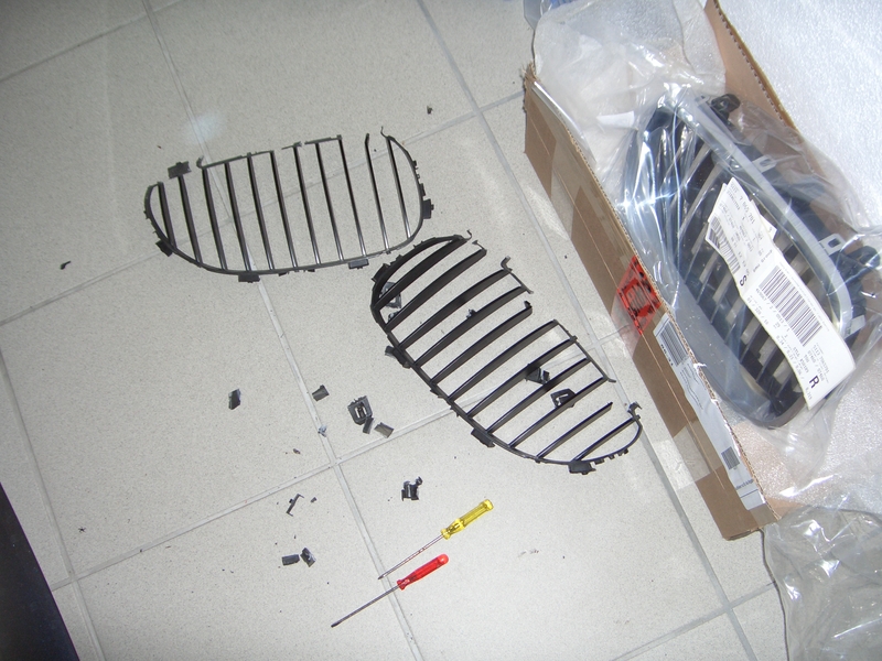 We bought original BMW chrome kidneys on ebay last week and today I mounted them.