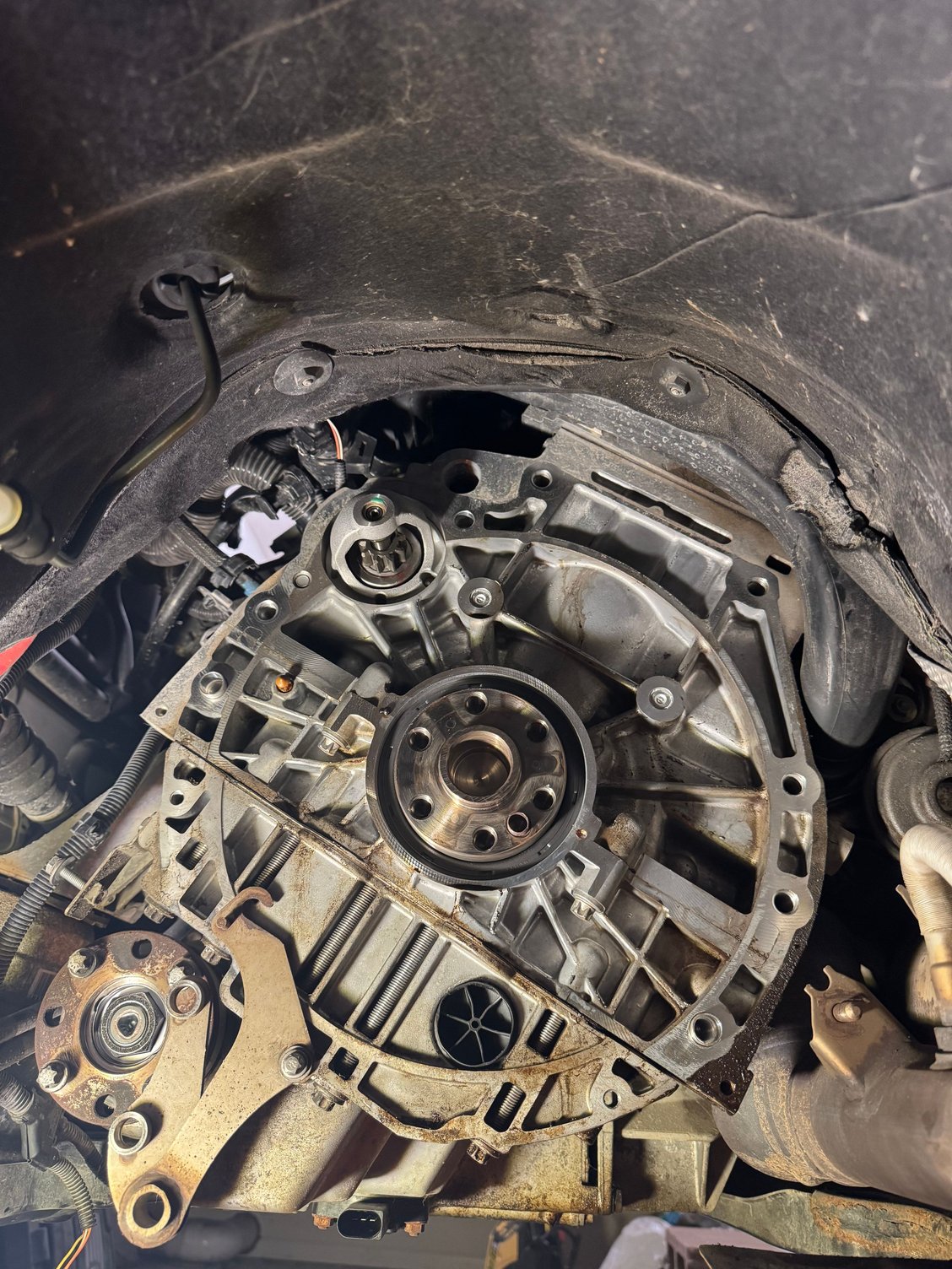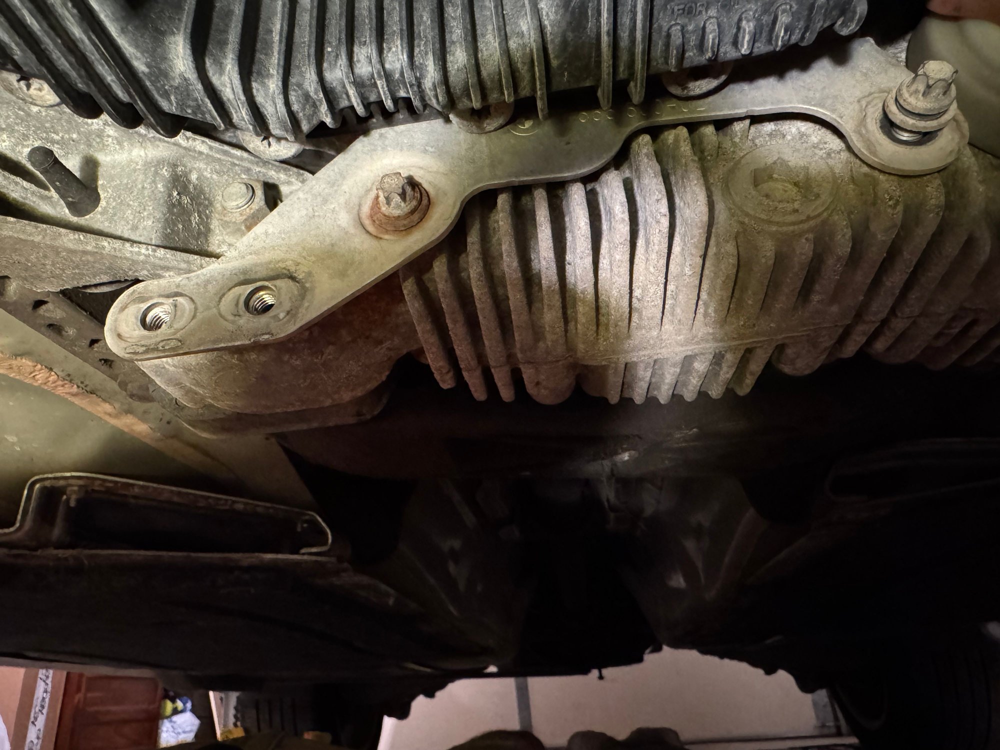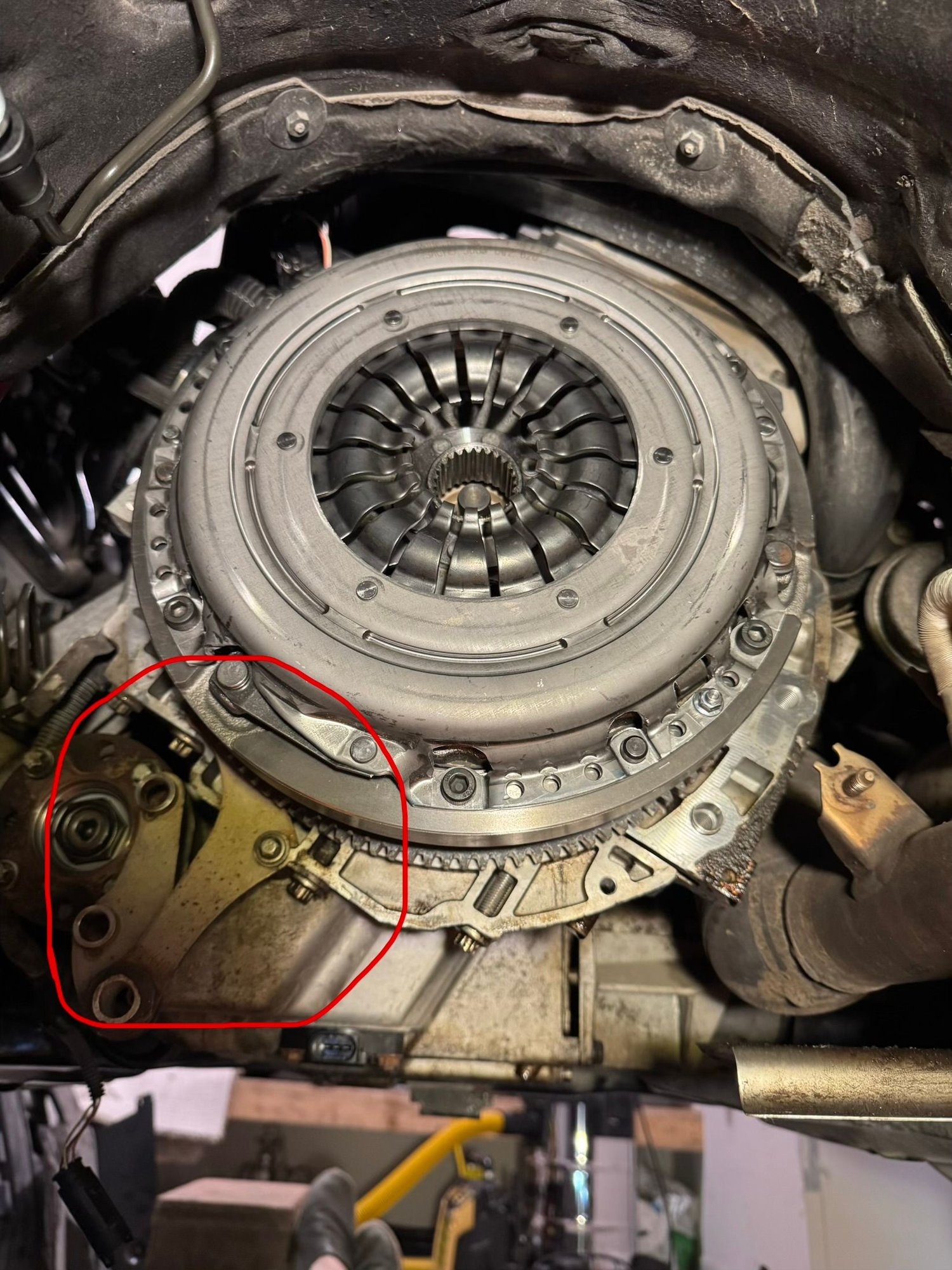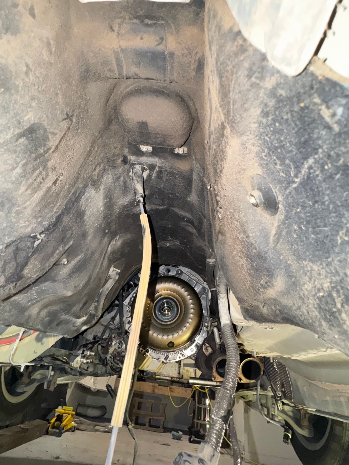 Once that’s removed the transmission can be lowered to gain access to the top bell housing bolts. Without doing this I don’t think you can access top bell housing bolts
