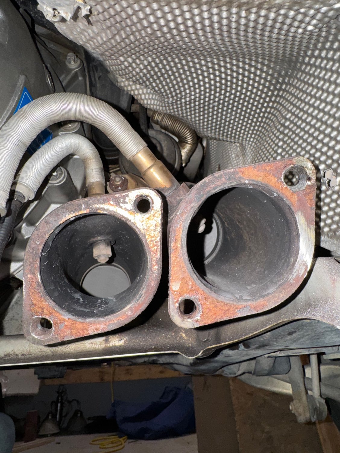 I had to deal with the rusted exhaust studs, heat from a MAP gas torch didn’t quite work so I used a bolt extractor to get the rusted nut off then I ground off the stud with a metal grinder. After that I drilled out the holes again and bought a new exhaust gasket kit from ECS tuning ( https://www.ecstuning.com/b-vrsf-par...55/509010~vrf/ )