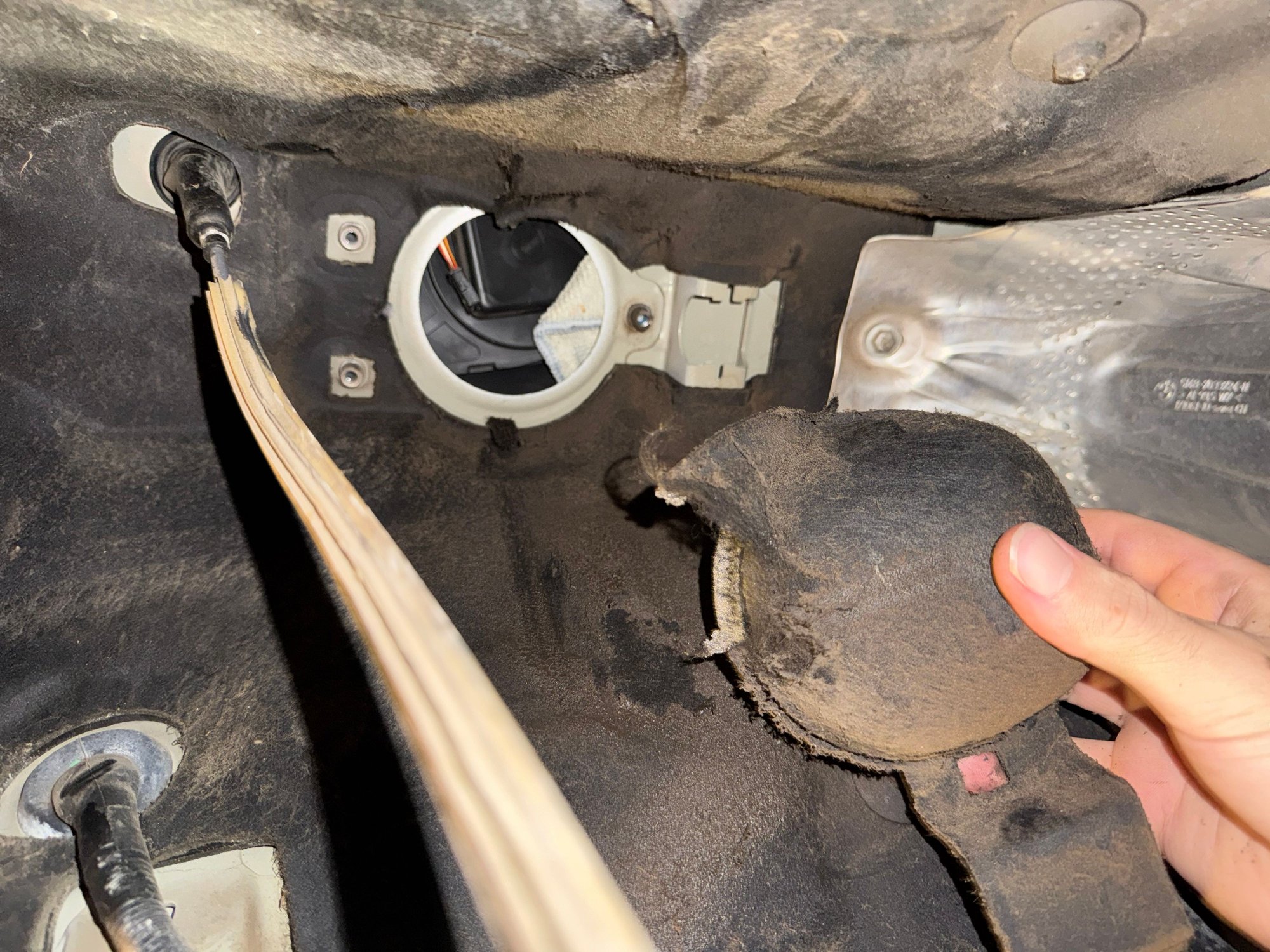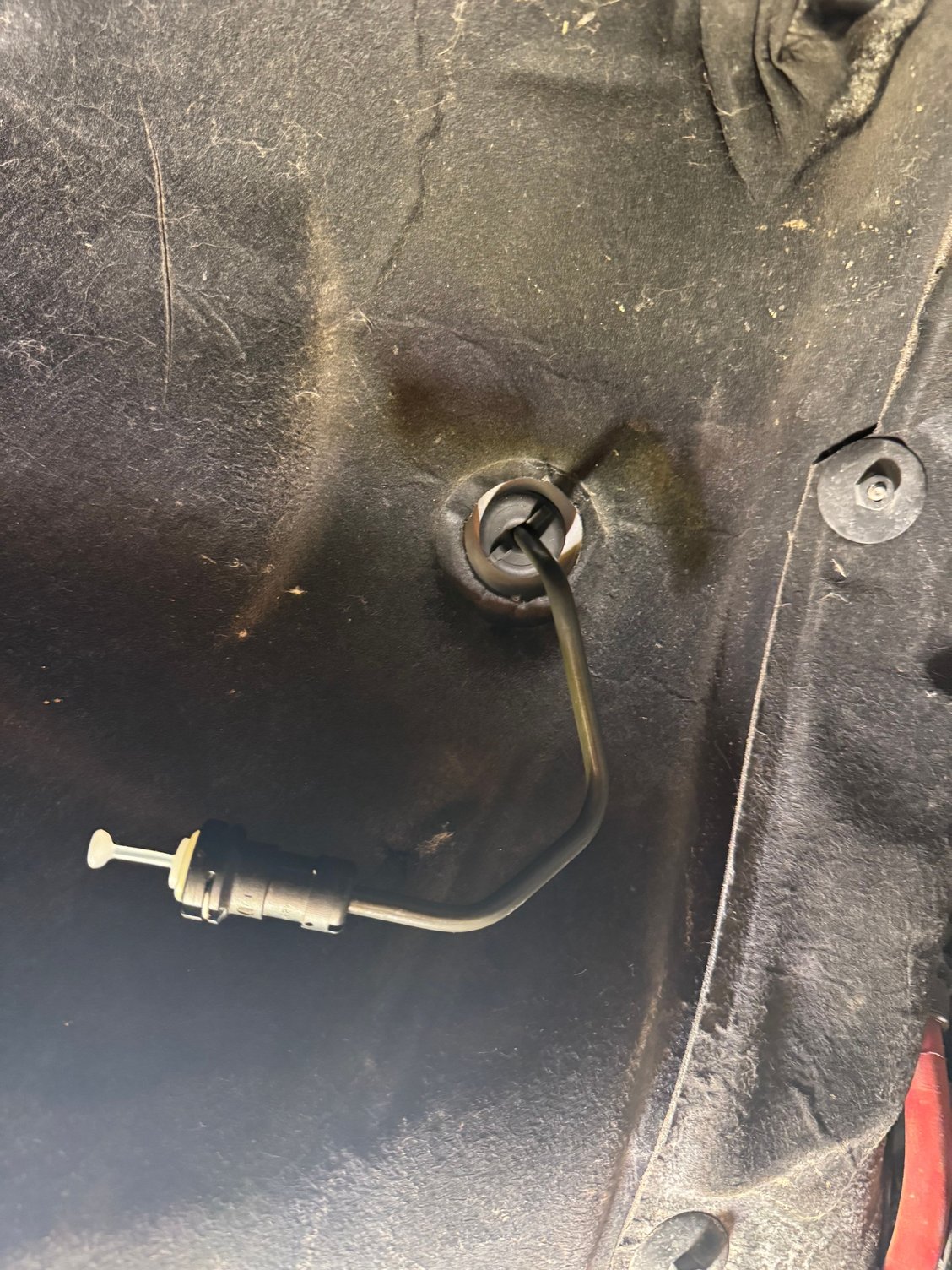 Routing the hardline that goes from the master cylinder to the slave cylinder was the most difficult in this process. I managed to not have to remove the interior carpet and was able to peel it back enough to locate the hole that punches out to under the car. For the e60/61 it’s under the center trim of the car more, far right of the gas pedal.