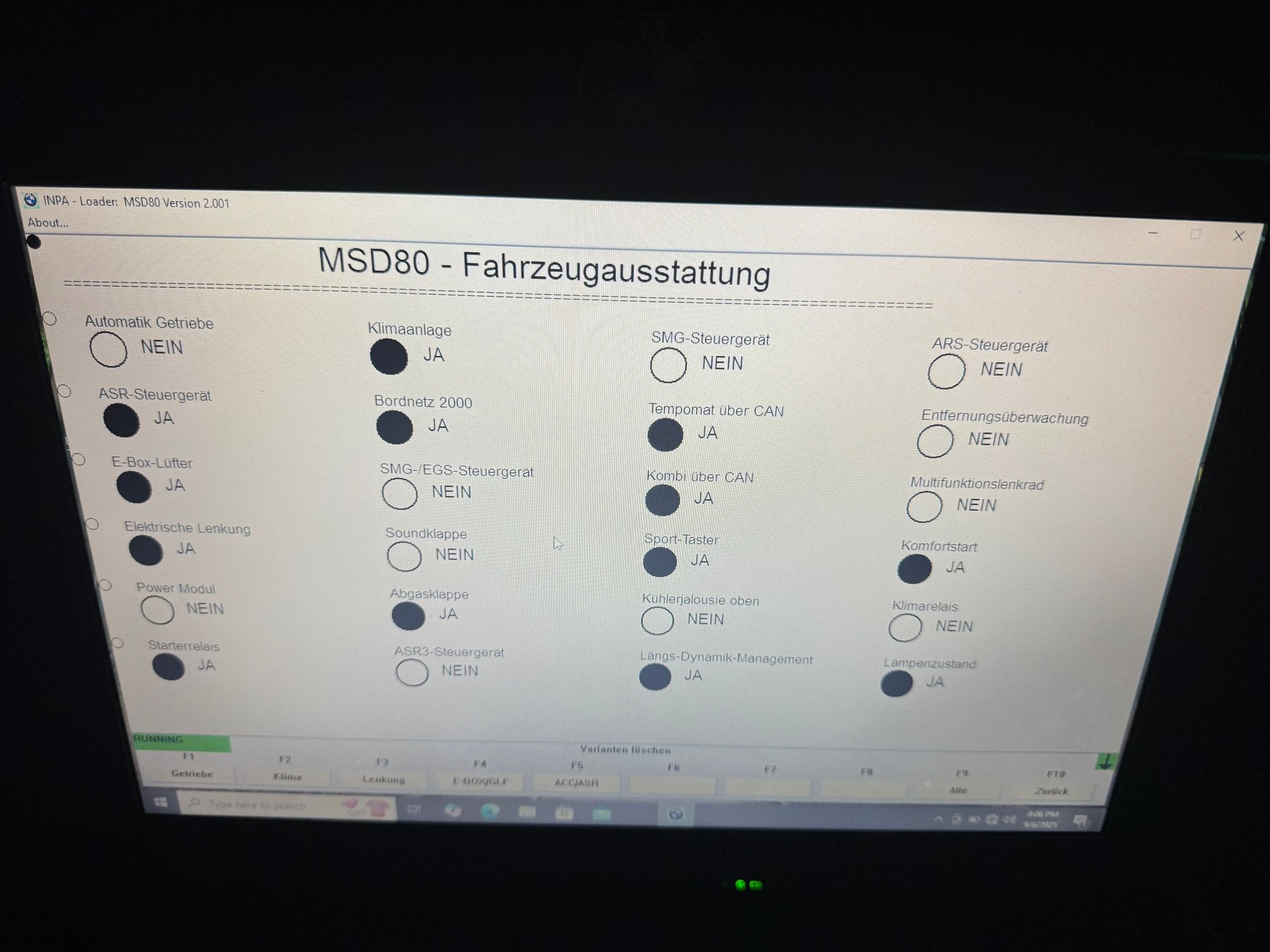 MSD80 -> F5 - Status -> F1 - Digital Values -> F5 - Vehicle Options or Equipment