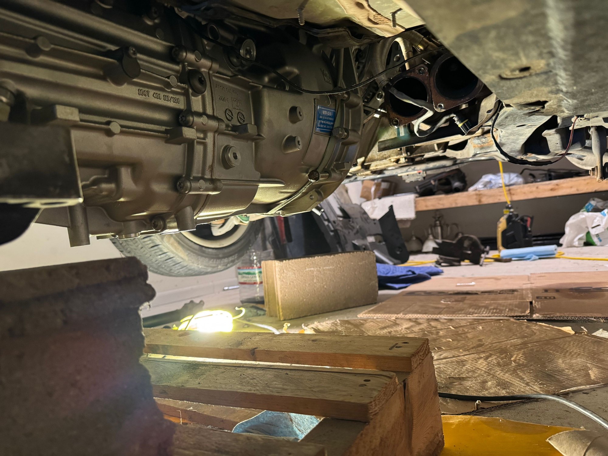 I started by making sure I jacked up the car to give me enough clearance to get out the automatic transmission from under the front end of the car.