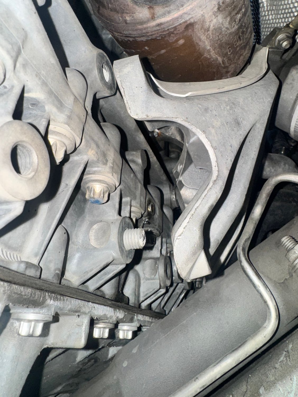 I felt all around it to find any pipes, tubing etc that could have fluid going to it, or any exposed gears or anything else and from what i can tell it's just a big chunk of metal... I am very confused as to what it is, thinking maybe transmission counter balance possibly?? I'm attaching pics for reference and would appreciate any guidance!