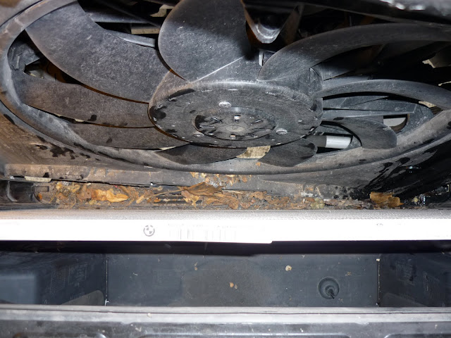 Thanks to member "cwmenne"(a fellow Minnesotan) and this thread I decided to take out my radiator, 2004 545i, and clean it as I was going to change my coolant anyway. Here are a couple pics of what it looked like.