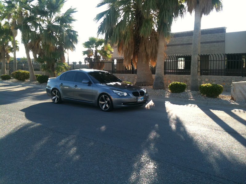 My Ride: 530I Silver gray with gray leather with Premium Package, Logic 7 Premium sound system with Ipod interface, xenon adaptive headlights, Active steering, Power retractable rear sunshade, Comfort seats, Cold weather package and M5 OEM 166 wheels, Sprintbooster. Ceramic Tint all around, Bilstein Sports shocks with Eibach springs, Brake performance Rotors and Axxis ceramic pads.